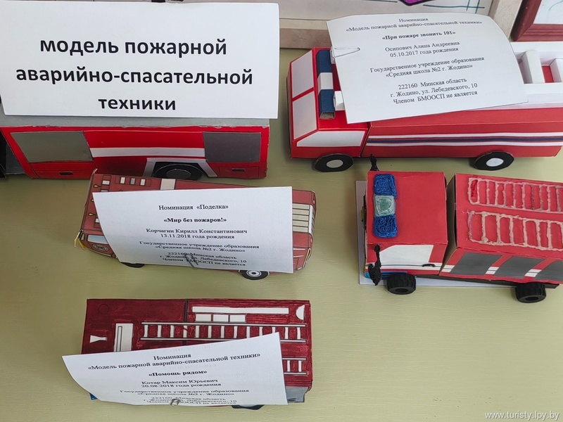 21 лучшая работа и предоставлены в ГУО «Минский областной институт развития образования», для участия в областном конкурсе в номинациях «Рисунок», «Плакат», «Поделка», «Скульптура малых форм», «Модель пожарной аварийно-спасательной техники» членами жюри были отобраны 30 лучших работ и предоставлены в городской отдел по ЧС для участия в областном конкурсе.